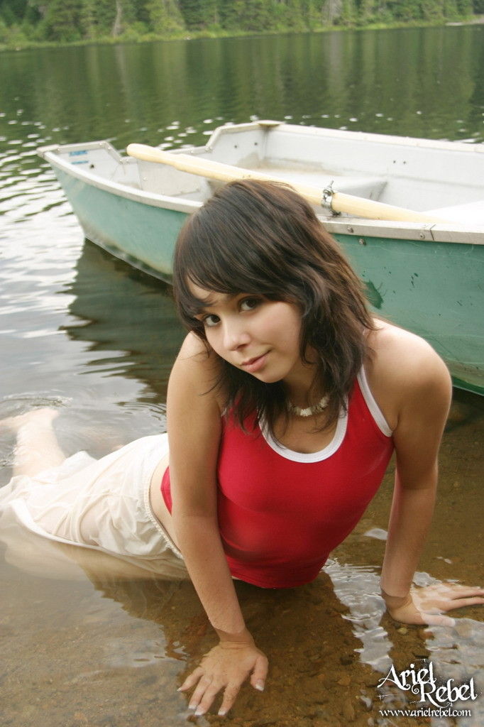 Эротический фотосет на реке красивой намокшей брюнетки Ariel Rebel.